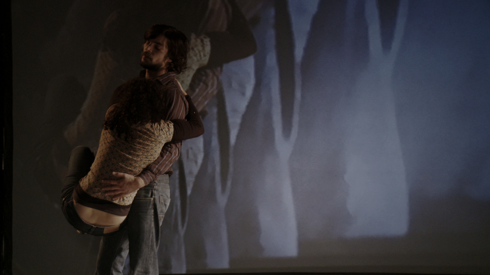 Suite à deux jours d’expérimentation entre le mouvement et l’image, nous avons présenté une étape de travail autour de l’équilibre. Désaccords donne lieu à une performance de 25 minutes sur la relation d’un homme et d’une femme face à l’apparition de l’image dans leur quotidien. Une création collective avec Damien Buestel et Sarah Guilleux.